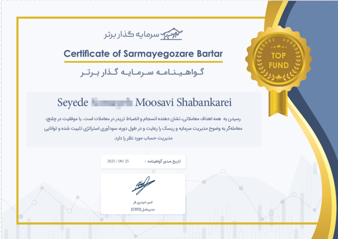 "از سال ۹۹ وارد بازارهای مالی شدم،و بعد از تجربهی دوره های متعدد ،بیاعتمادی به کانالهای سیگنال ،ضررهای سنگین و افراد استاد نما با دوره سیمپل ویژن آشنا شدم، به جرات میگم ساده ترین و قابل فهم ترین و سودده ترین دوره ای هست که دیدم و خیلی زود تونستم باهاش بازار رو درک کنم و چندتا پراپ پاس کنم."